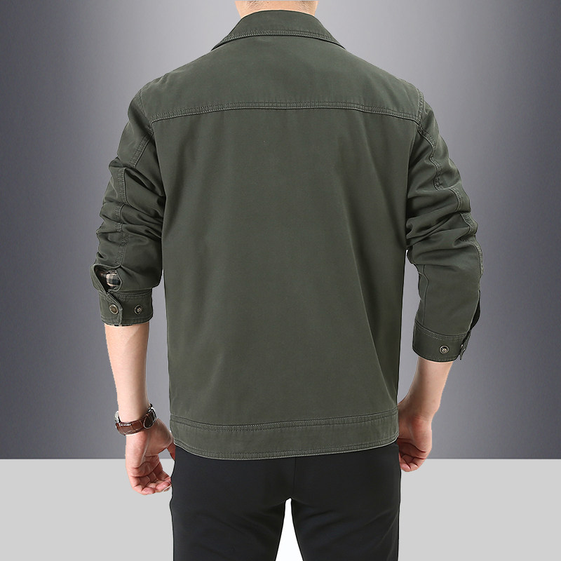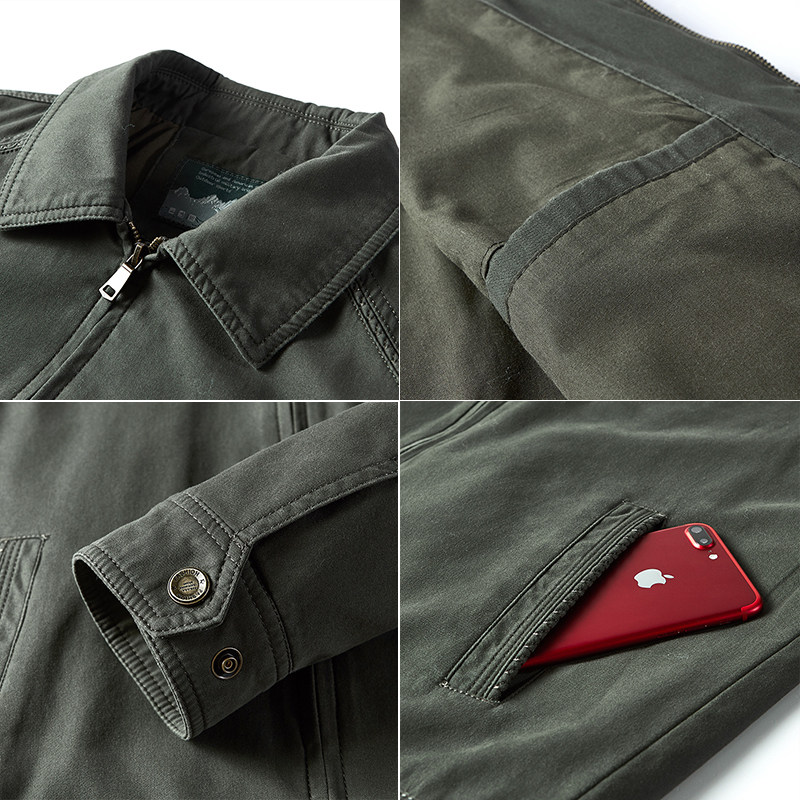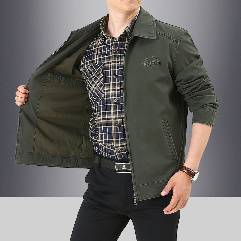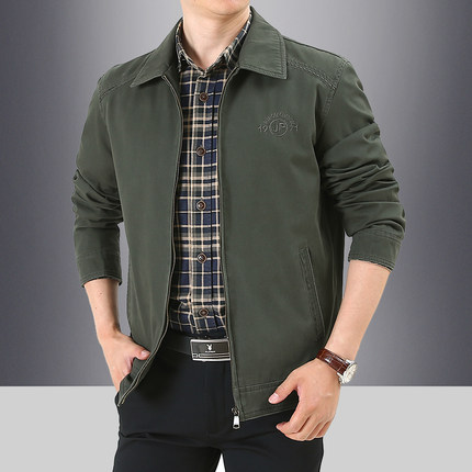 夹克男春季纯棉男士休闲中年爸爸装大码宽松纯色工装外套翻领薄款