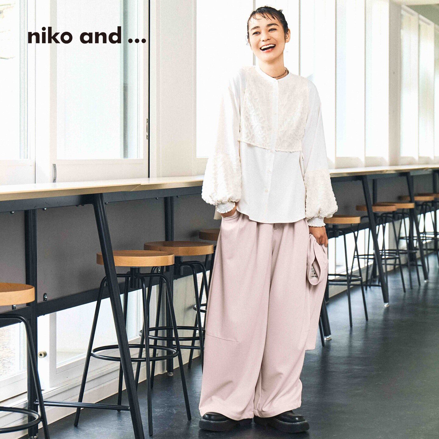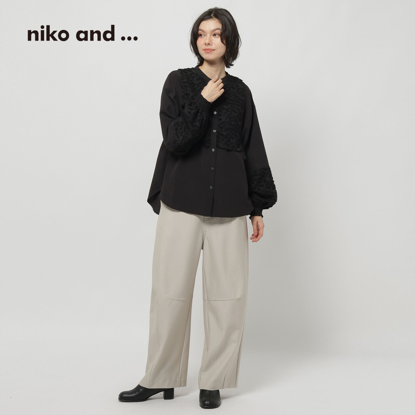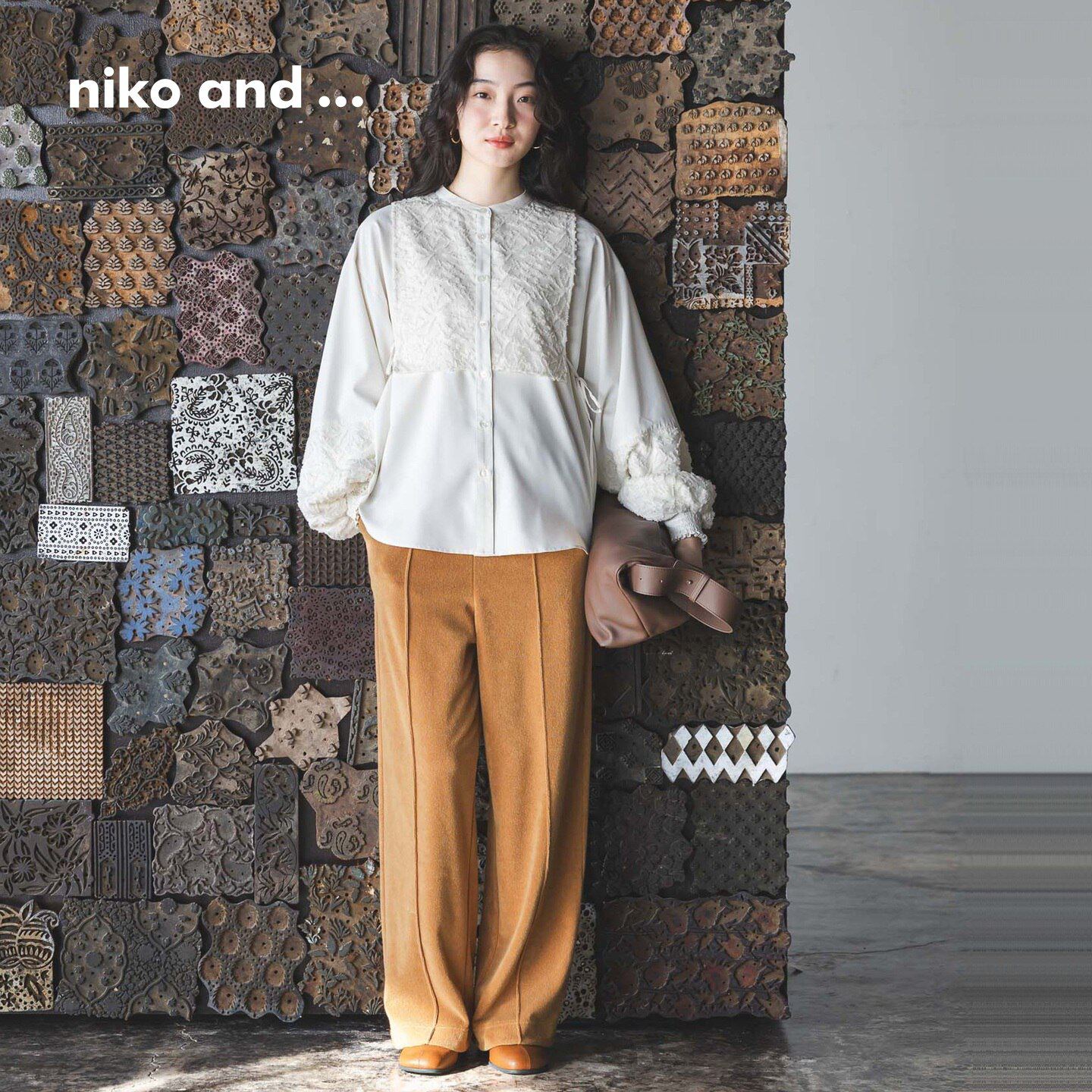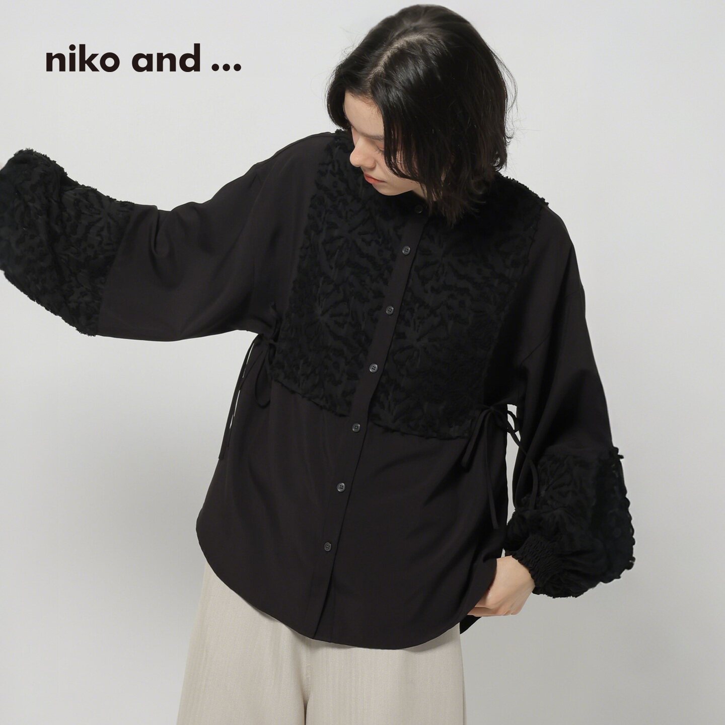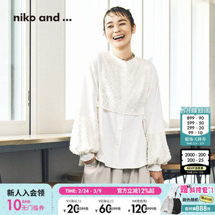 niko and ...衬衫女2026春季新款蕾丝提花拼接灯笼袖上衣608545