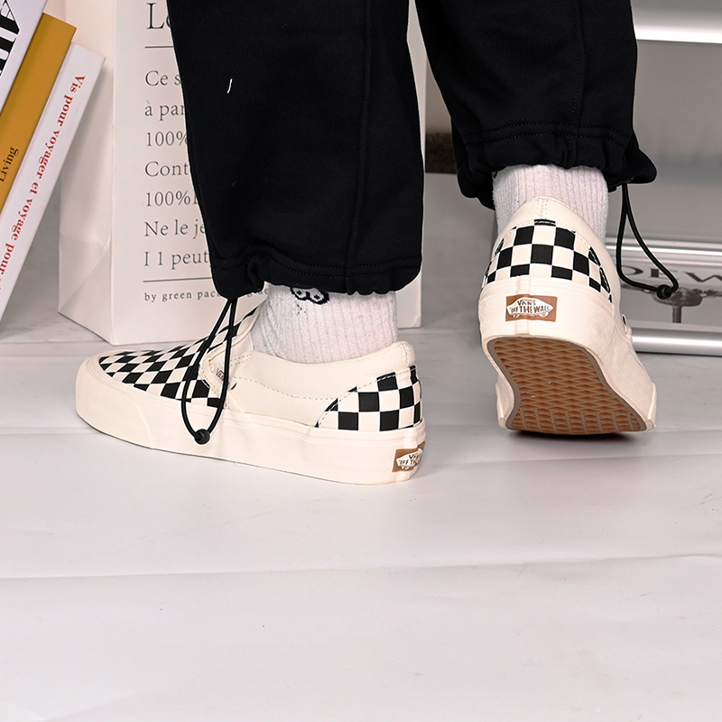 VANS范斯男女鞋环保材料slip on VR3黑白棋盘格懒人一脚蹬板鞋