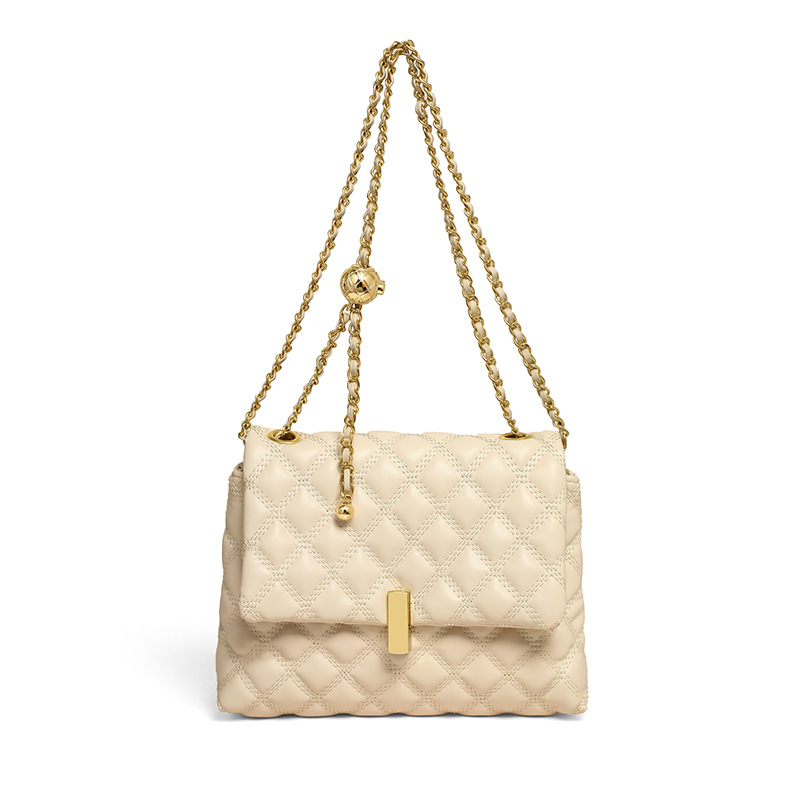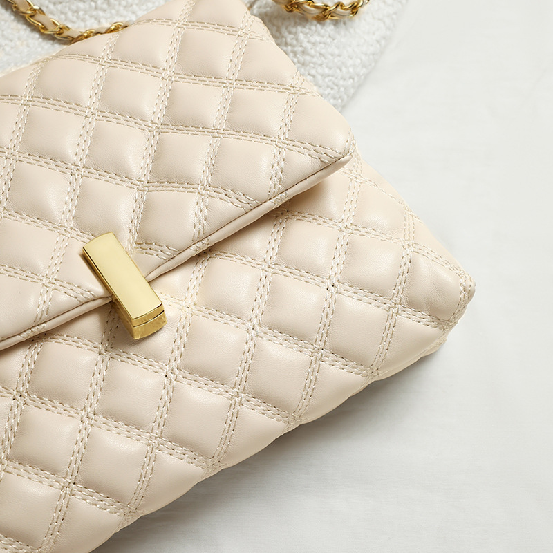 Viney真皮包包新款女轻奢菱格斜挎包高级感气质大学生通勤链条包