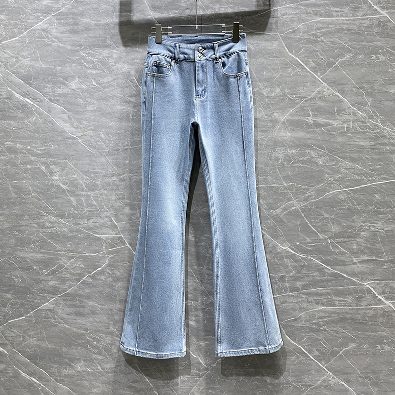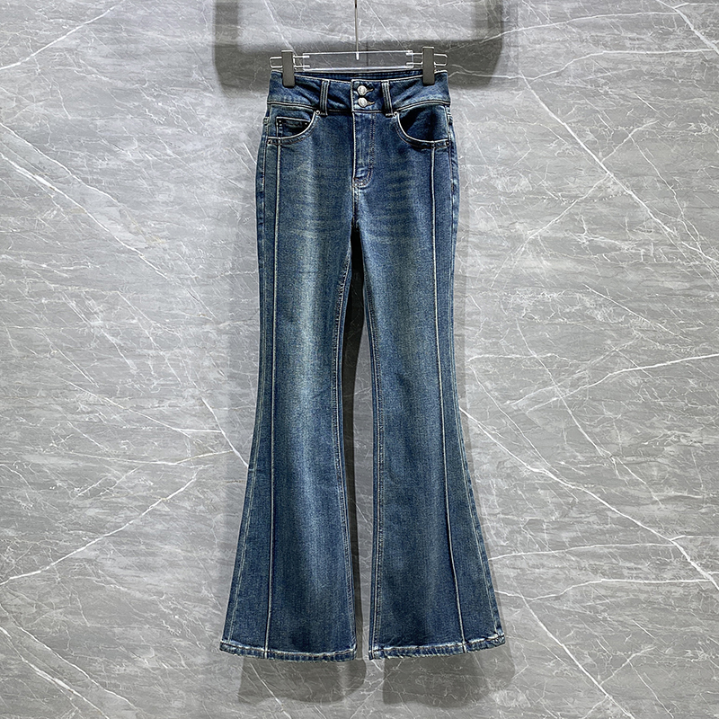 小众欧货2025春季新款加绒高腰直筒裤修身宽松牛仔裤显瘦喇叭裤女