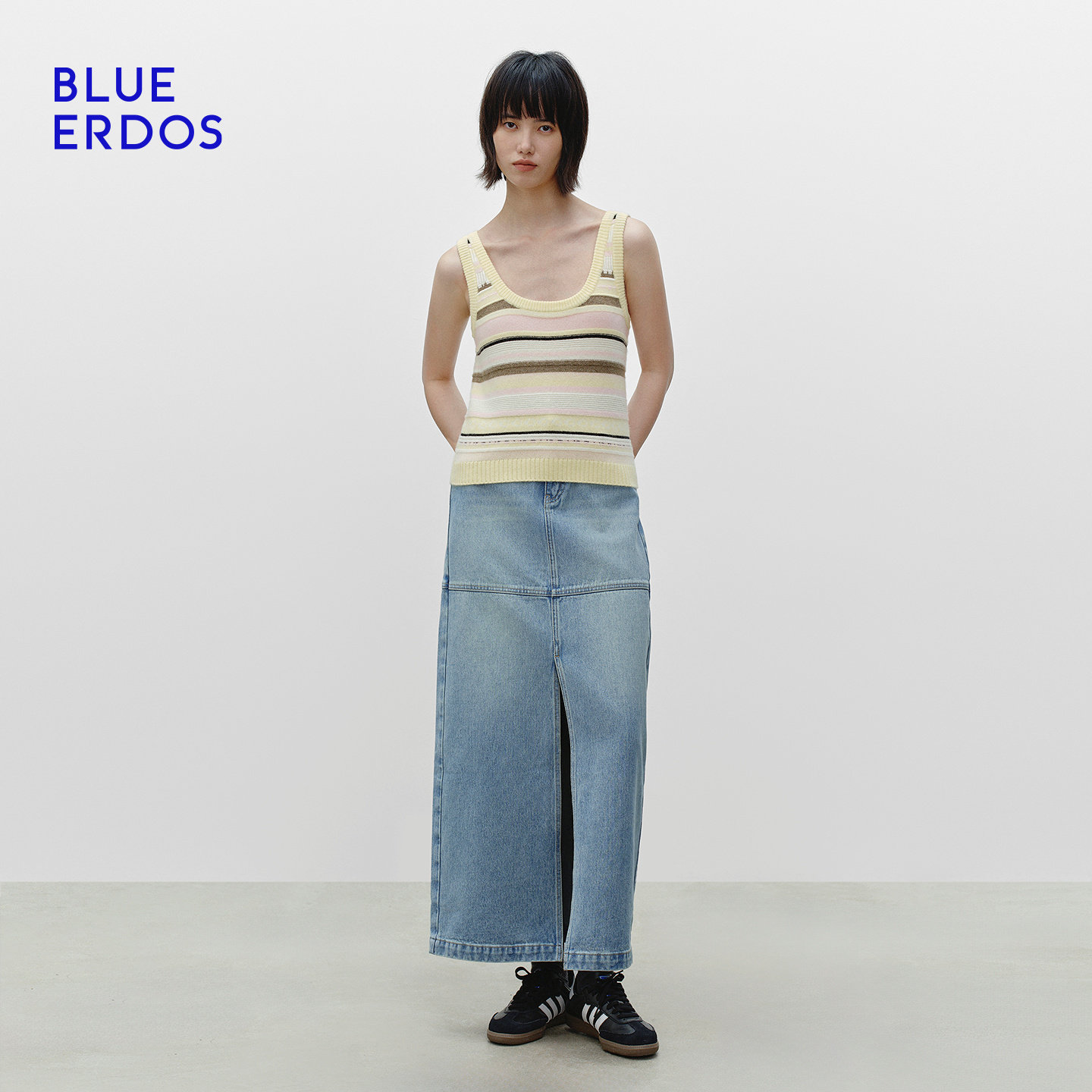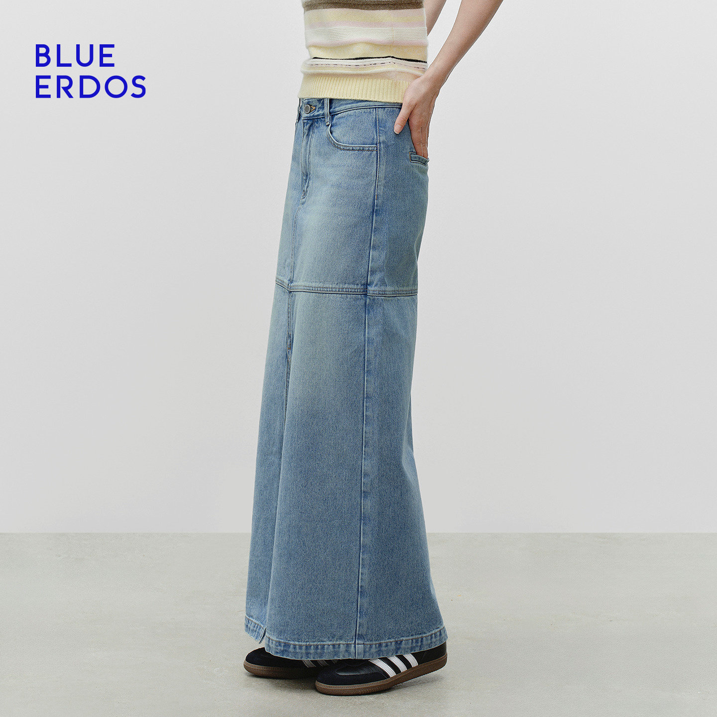 【100%棉】BLUE ERDOS 冬季新品百搭水洗牛仔半身长裙女直筒裙