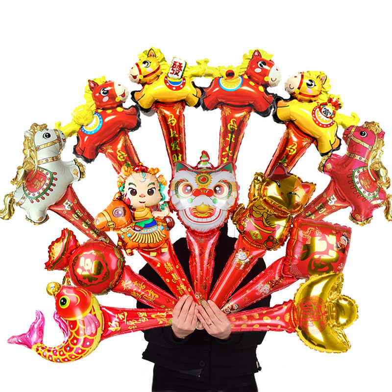 2026新年马年春节元旦商场学校儿童充气手持表演道具礼品铝膜气球