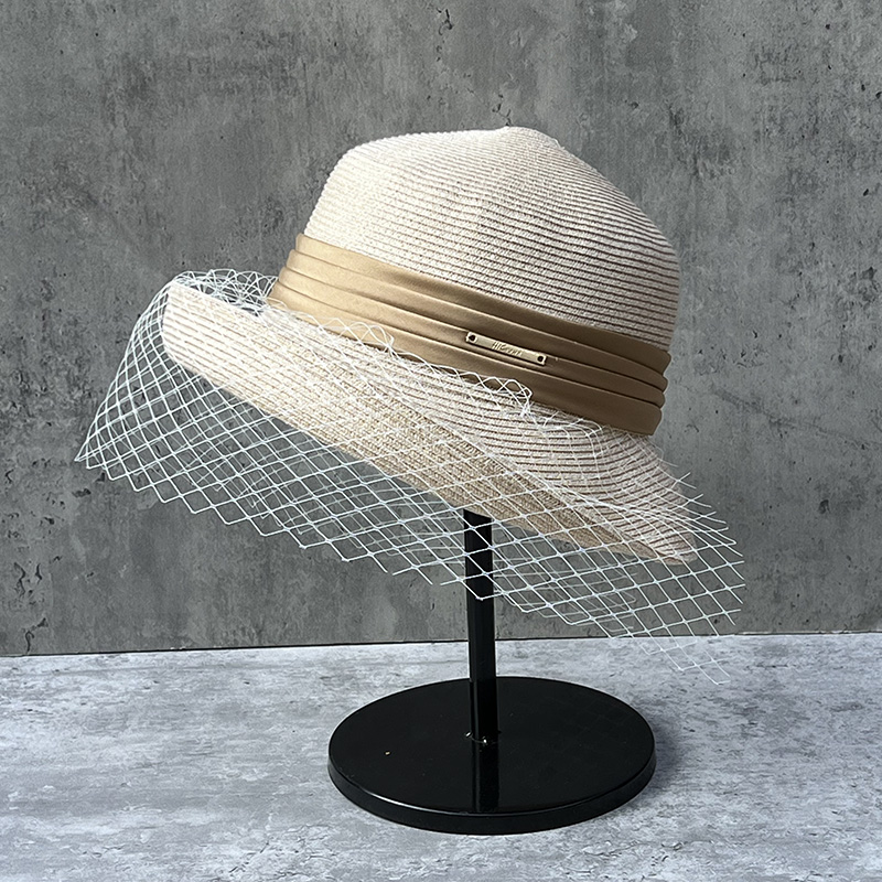 草帽优雅女夏季卷边网纱遮阳盆帽