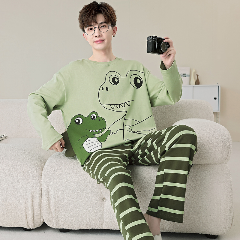 春秋季男款睡衣纯棉长袖卡通青少年男士薄款大码童学生家居服套装