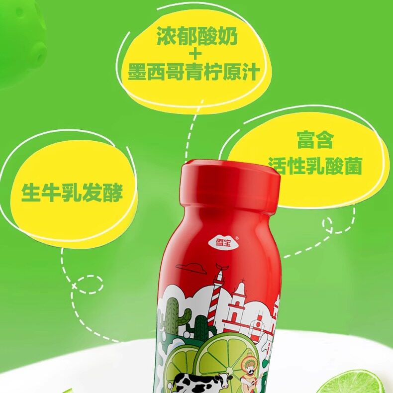 雪宝青柠味酸奶210g瓶装青柠酸牛奶益生菌低温营养浓郁