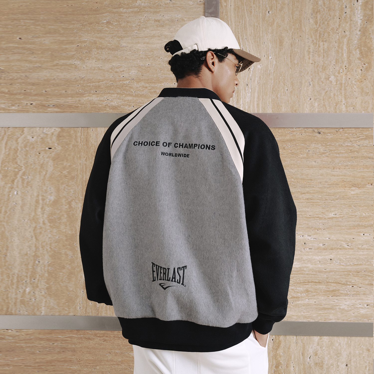 美国EVERLAST拳击美式高街运动男女款羊毛保暖宽松插肩棒球服外套