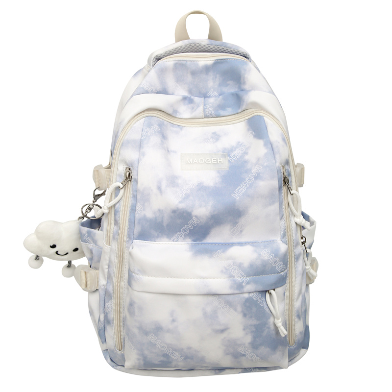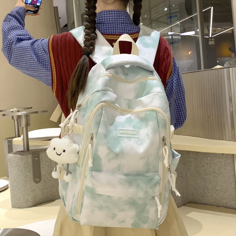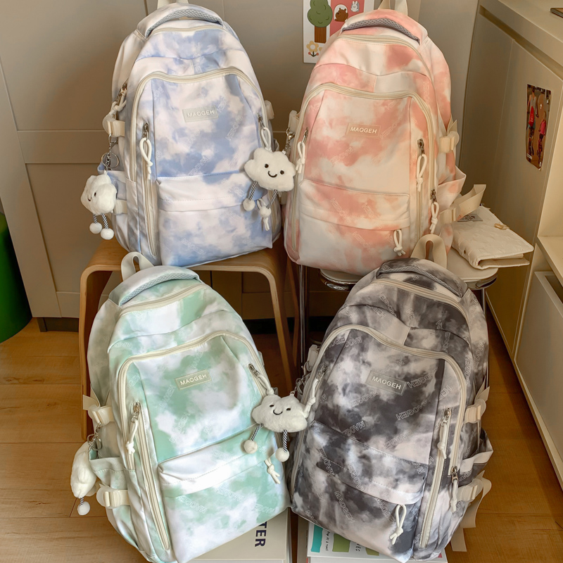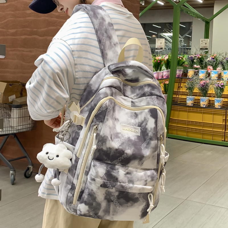 扎染百搭初中生女宽肩带书包女高中学生大学生大容量背包女双肩包