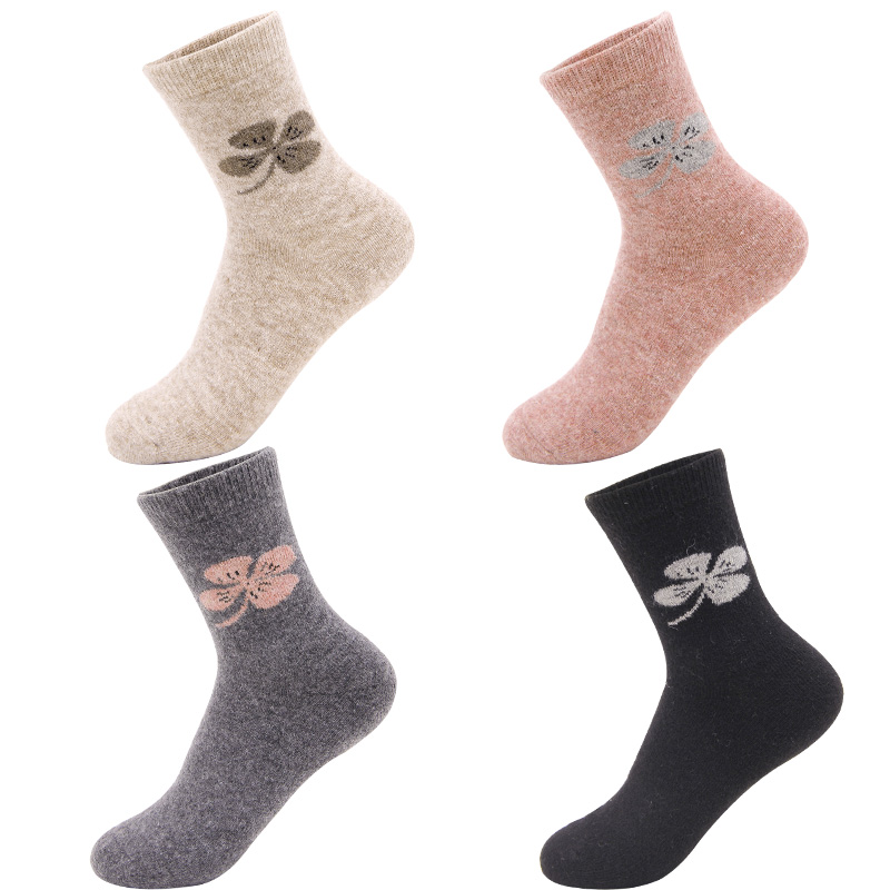 MaxDavid女秋冬加厚保暖袜时尚四叶草女棉袜防臭运动袜女兔羊毛袜