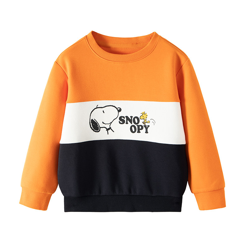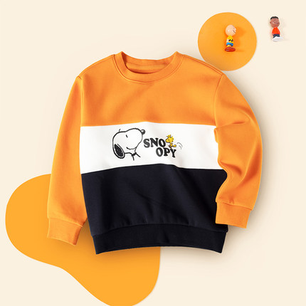 外贸出口男女童春秋款史努比撞色镶拼百搭休闲圆领童装卡通卫衣潮