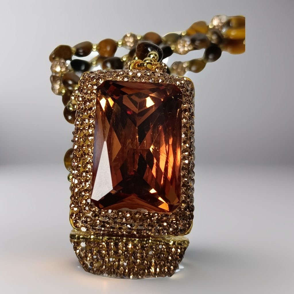 光感变色苏丹石套装吊坠项链戒指耳环虎眼石链条女款复古时尚气质