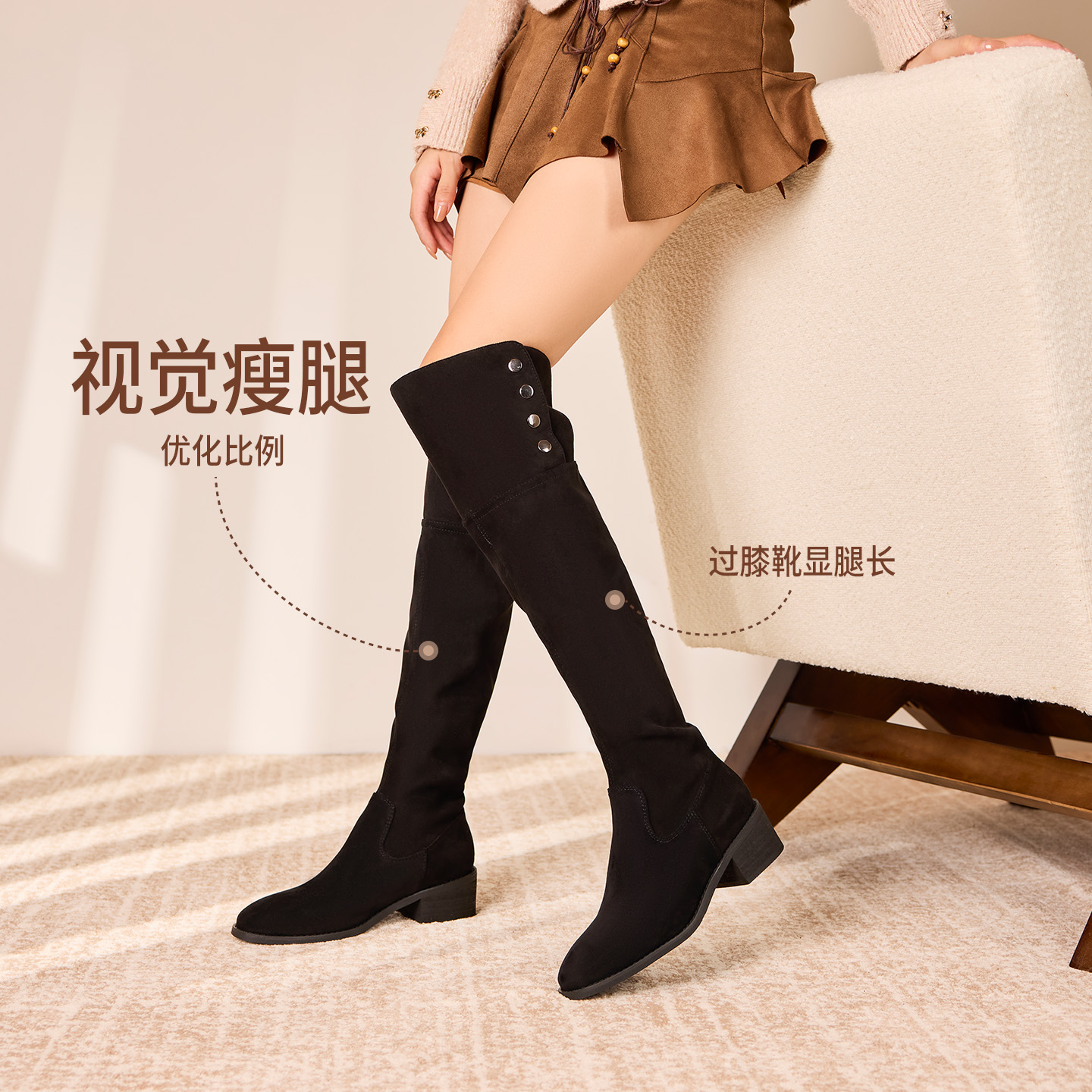 奥康 女鞋2025冬季弹力靴过膝时装靴显瘦显腿长百搭时尚两穿长靴