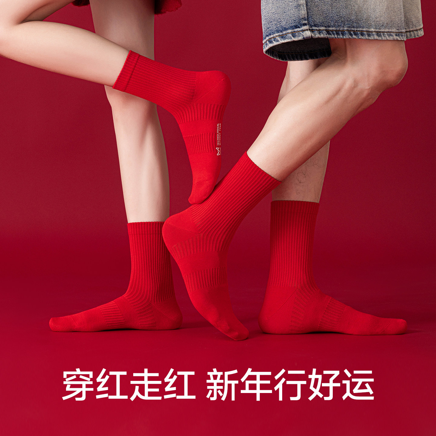 猫人本命年红袜子男女秋冬纯棉加厚款中筒袜情侣结婚喜袜一对长袜