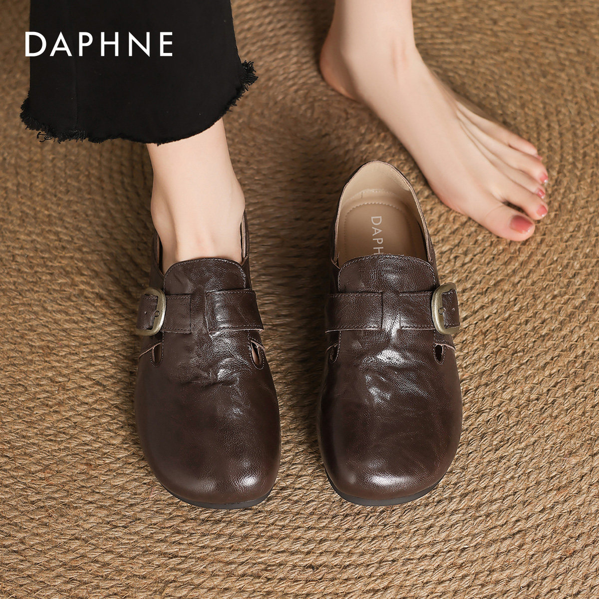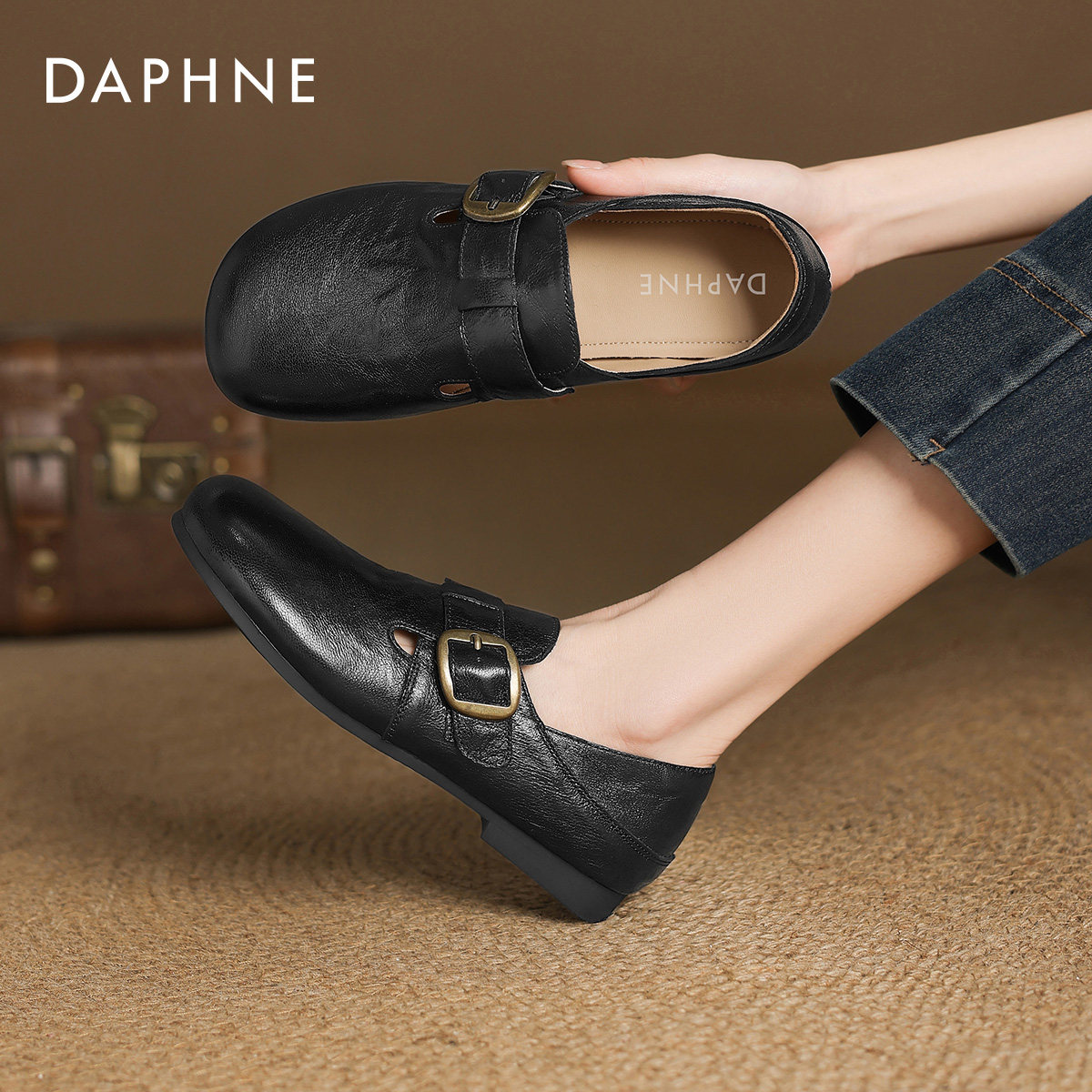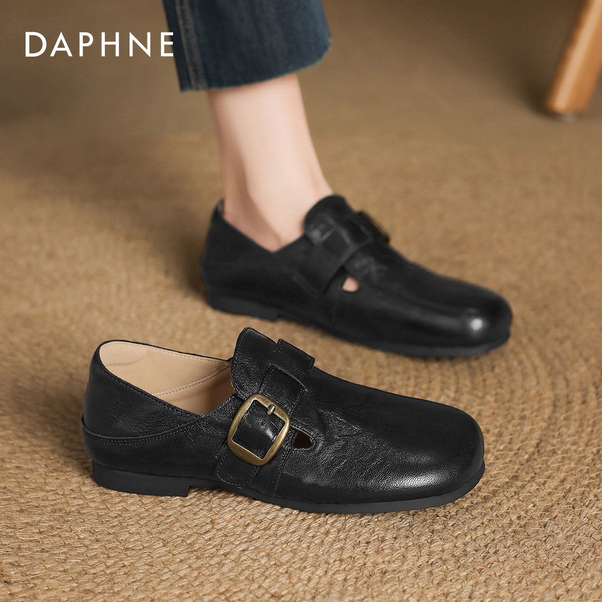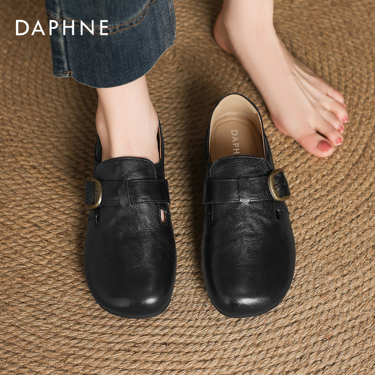 达芙妮黑色乐福鞋女2025新款春夏女鞋平底单鞋英伦小皮鞋子勃肯鞋
