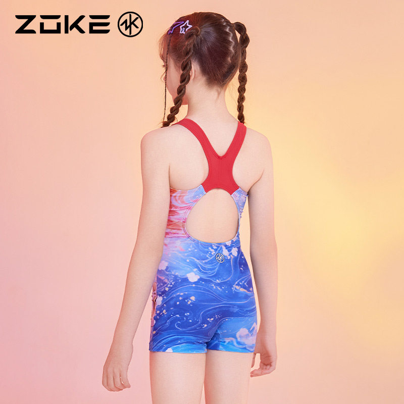 洲克儿童泳衣连体平角专业游泳训练zoke哪吒女孩速干中大童泳装