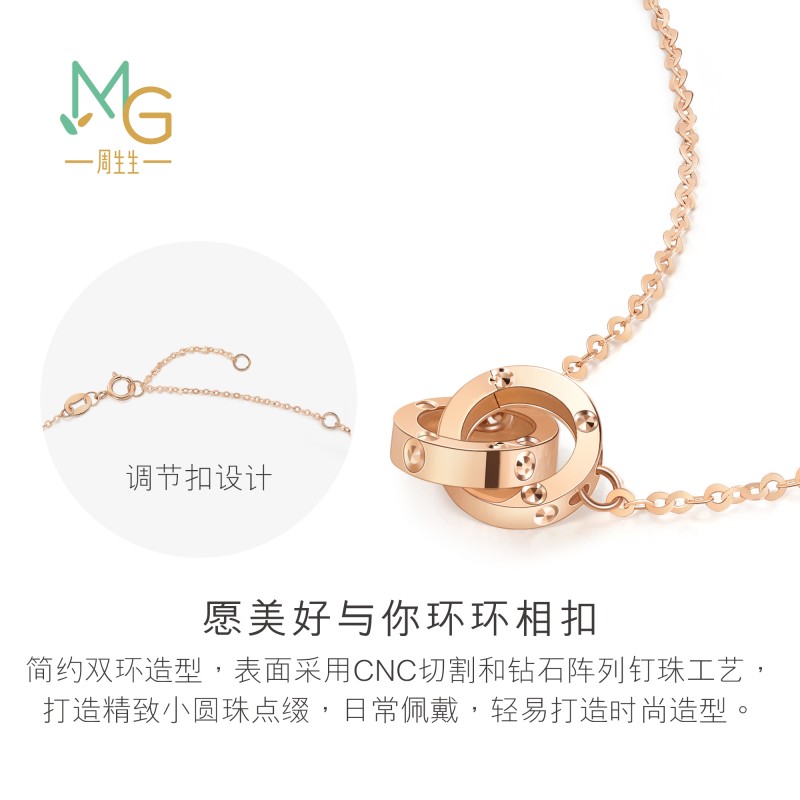 周生生薄荷系列环环相扣圆珠双环18K金项链91979N