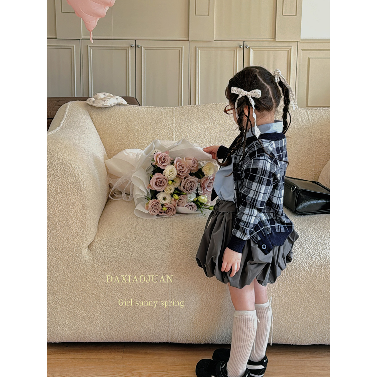 【大小卷】女童秋季学院风套装2025新款衬衫毛衣开衫半身裙短裙