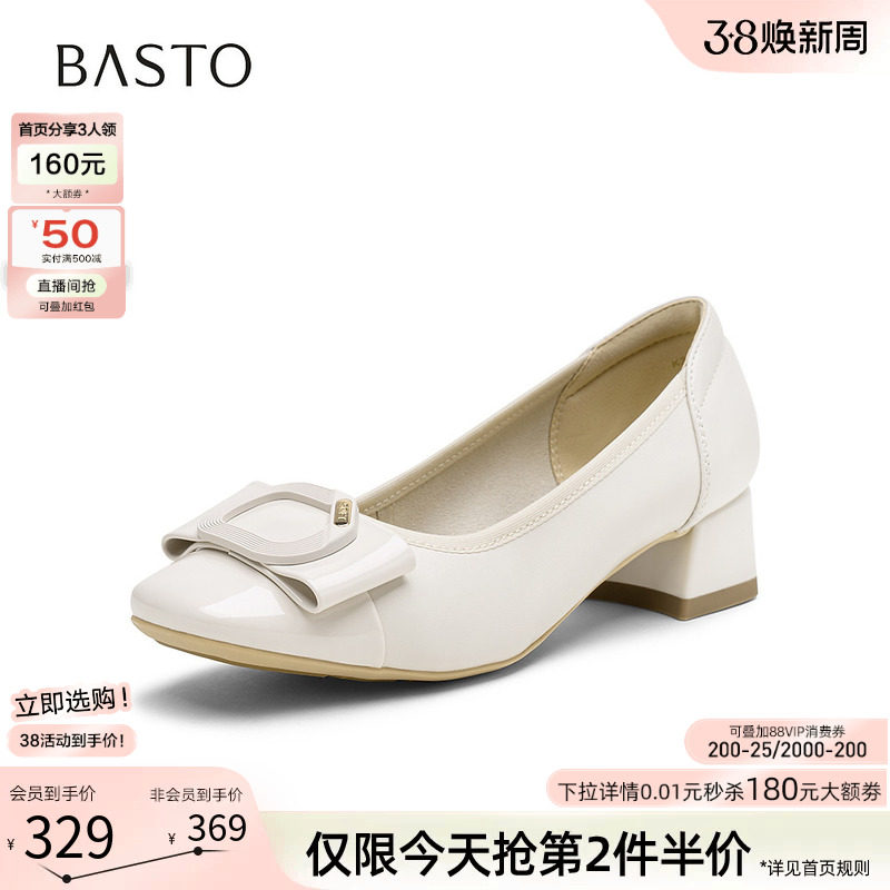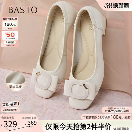 百思图秋商场新款羊皮通勤粗跟一脚蹬浅口单鞋妈妈鞋女K3080CQ5