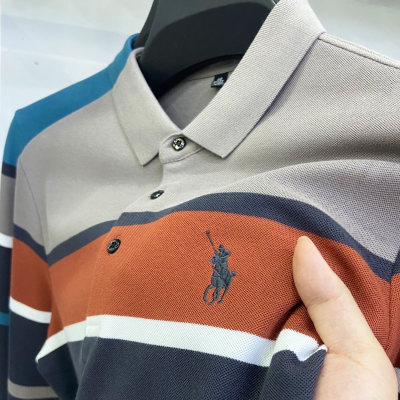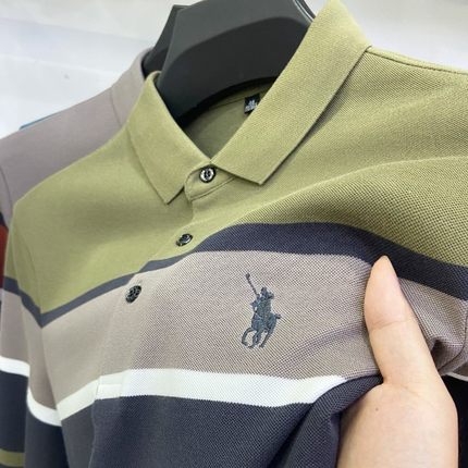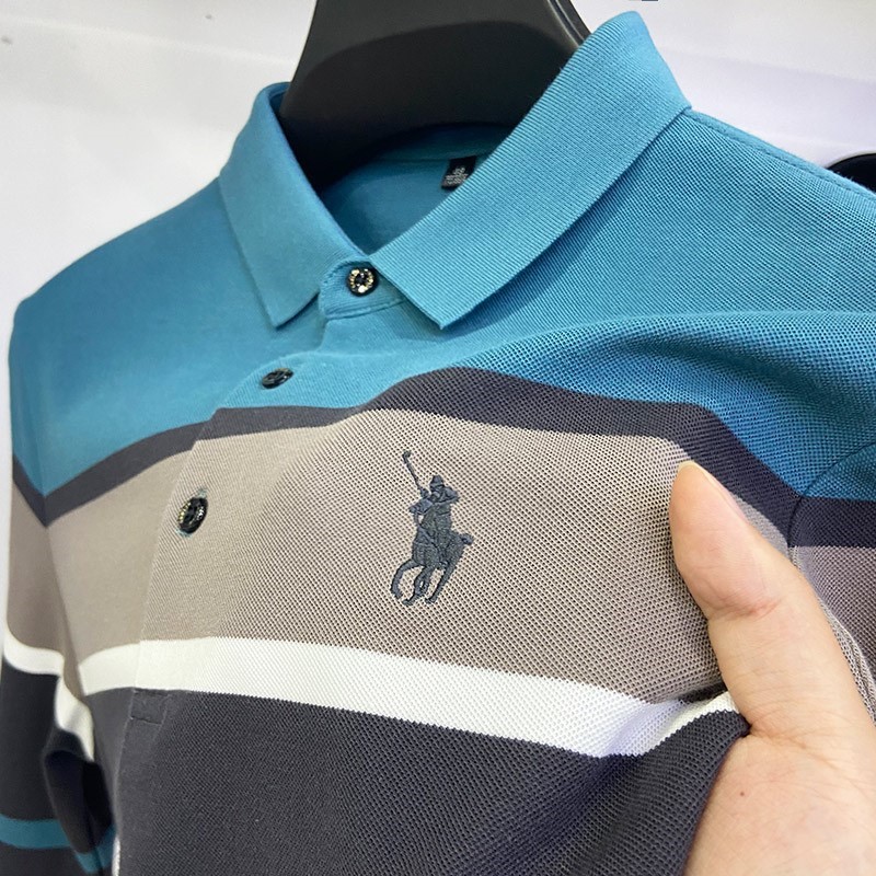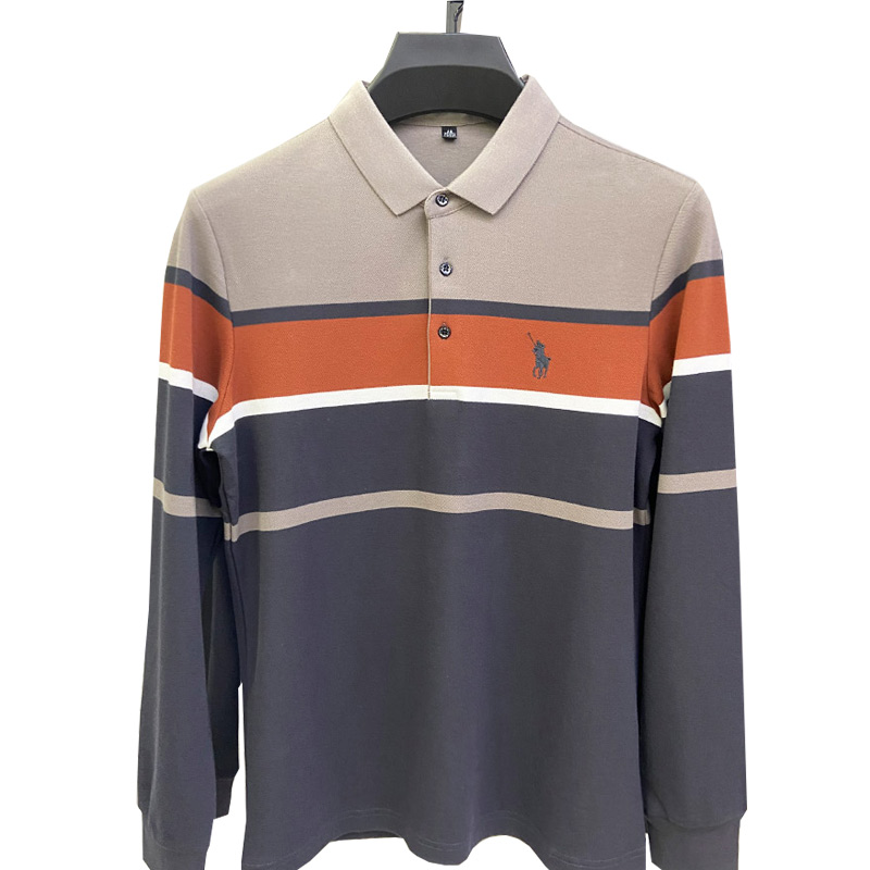 保罗长袖t恤男带领条纹中年男士polo衫小马标休闲爸爸春秋装上衣
