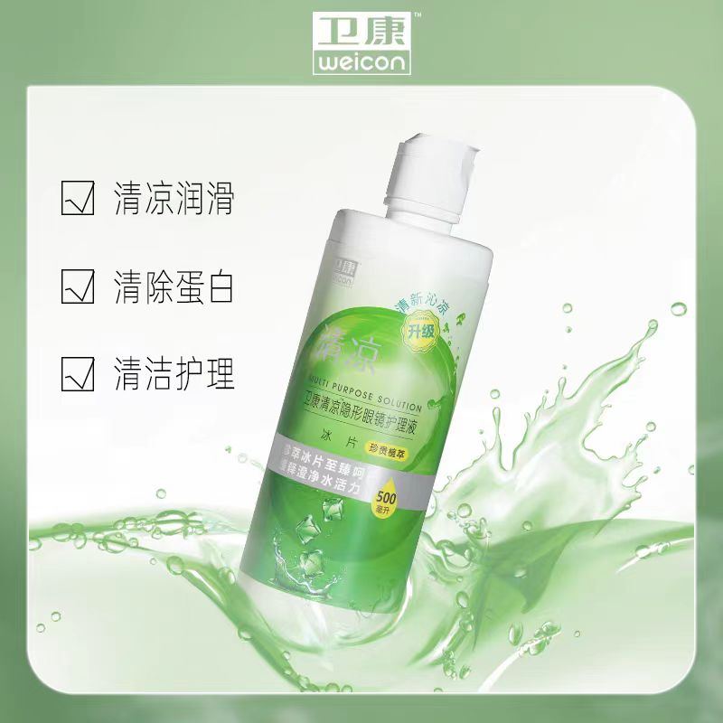 卫康清凉冰片隐形近视眼镜护理液500ml美瞳保养除蛋白水润清洁液