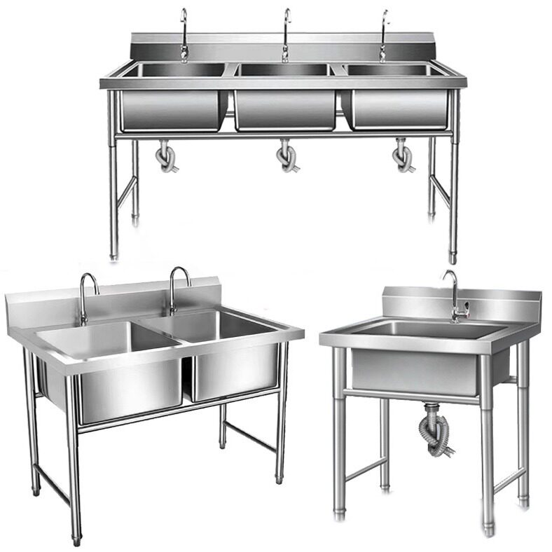 跨境包邮不锈钢水槽三槽洗刷池三星水池三槽洗菜盆洗碗池食堂厨房