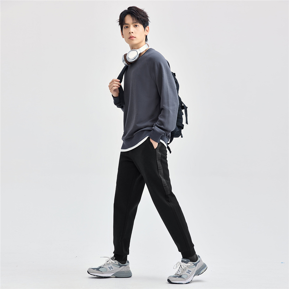 佐丹奴裤子男装品牌印花松紧腰双面布针织束脚卫裤 01114096