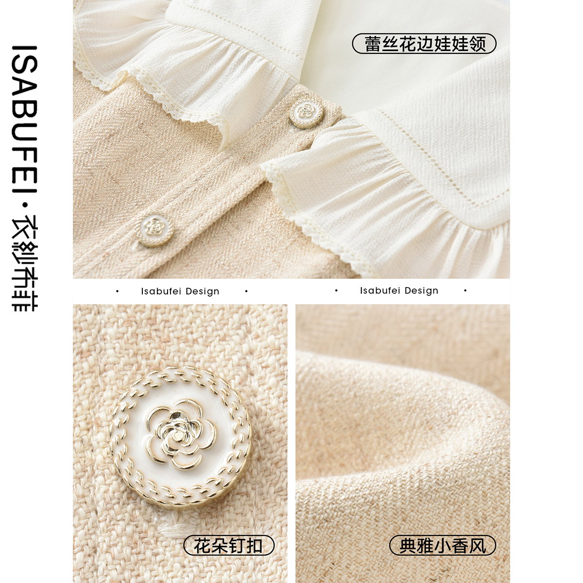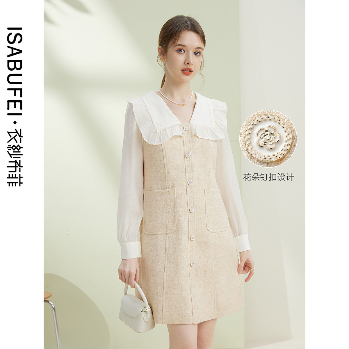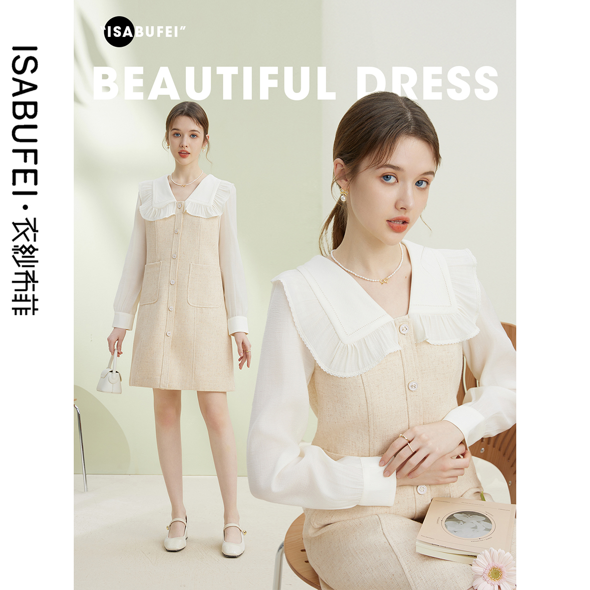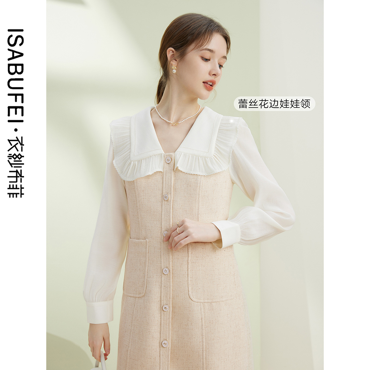 衣纱布菲朵沁 小香风娃娃领连衣裙新款女春宽松长袖高级a字裙