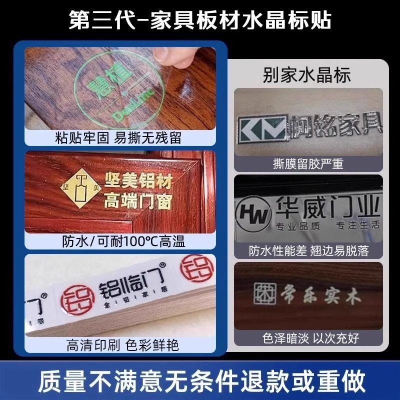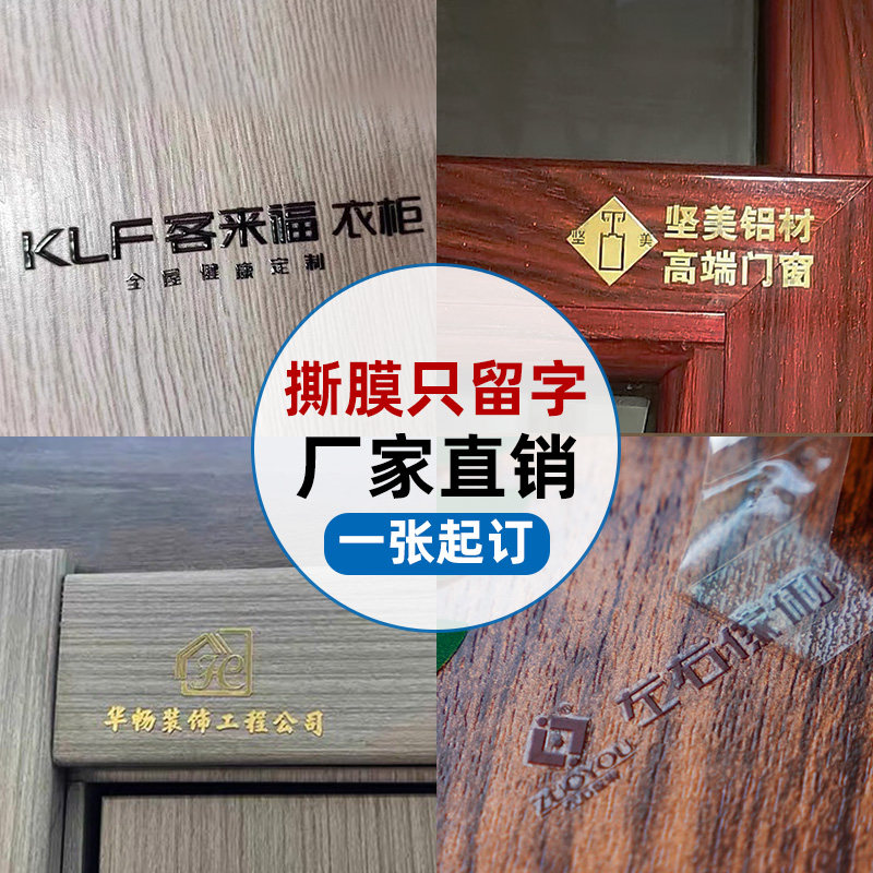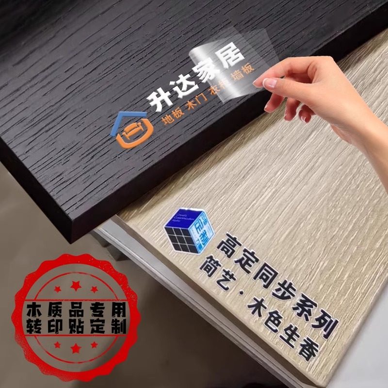 木门板材贴纸uv转印贴定制家具柜子标签贴字丝印撕膜留字logo商标实木衣柜木制品全屋定制墙板自粘水晶标贴做