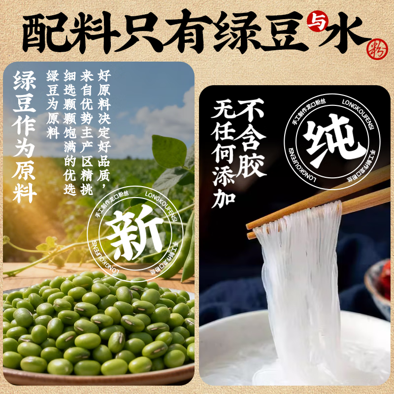 正宗龙口粉丝官方旗舰店山东烟台绿豆粉丝白扇贝蒜蓉生蚝凉拌火锅
