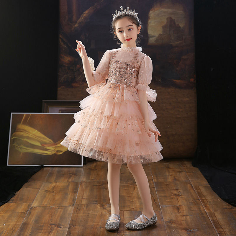 女童公主裙生日蓬蓬纱儿童礼服花童婚礼小女孩主持人走秀演出服秋