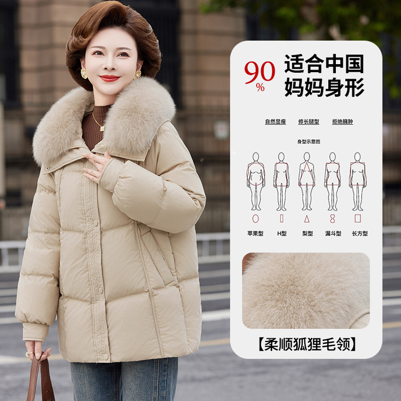 新款妈妈冬装羽绒服中年女洋气95鸭绒棉袄中老年加厚防寒棉衣外套