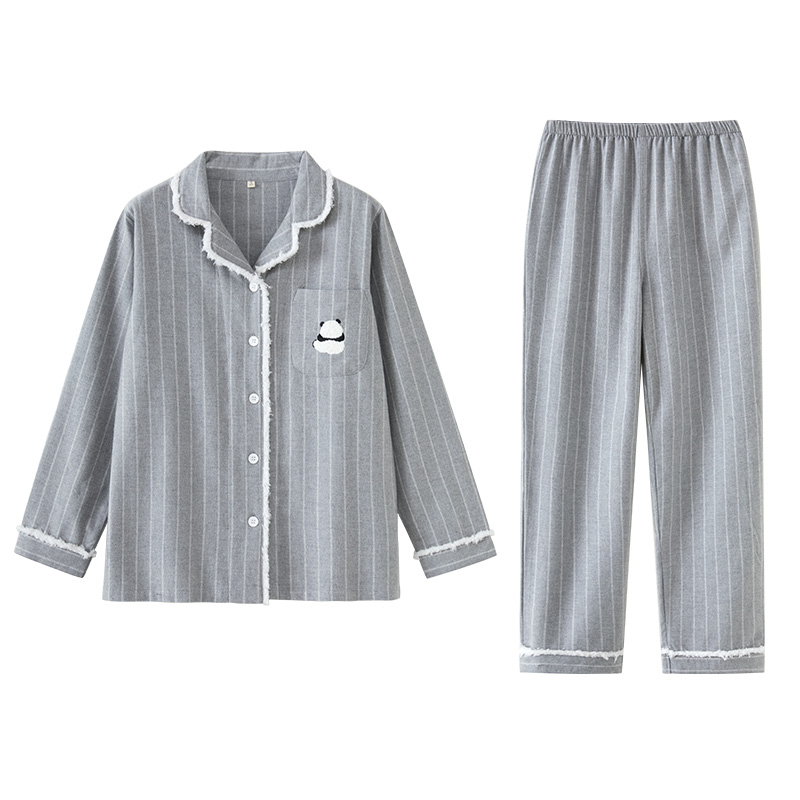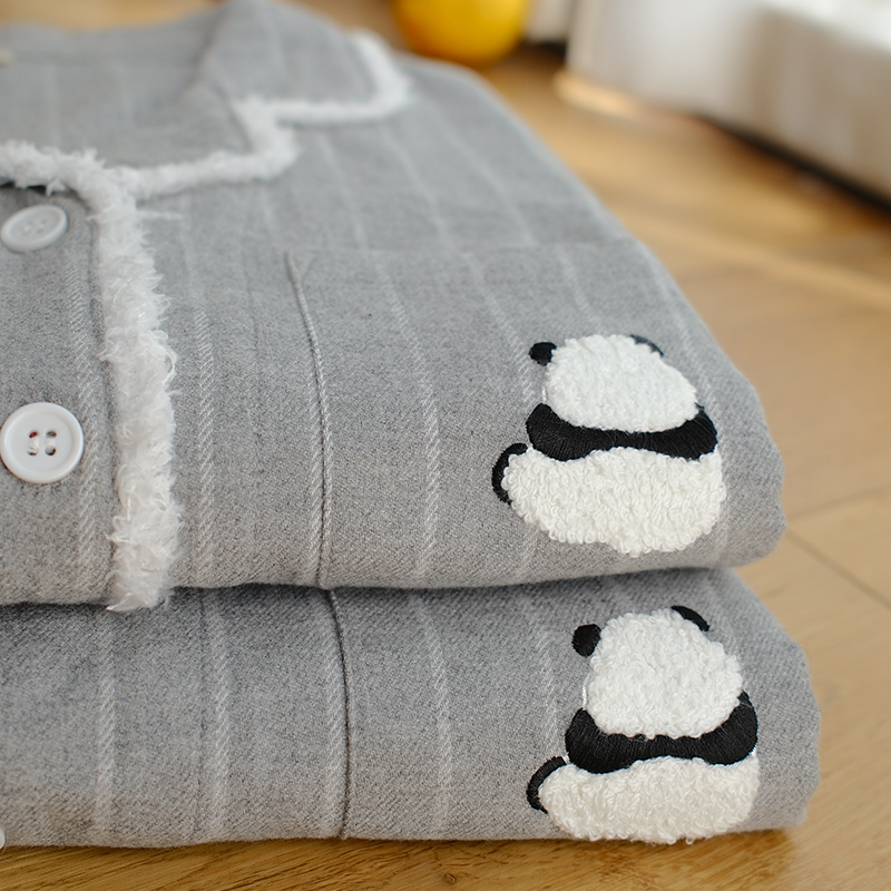 纯棉磨毛绒布纯色熊猫春秋冬季情侣睡衣长袖长裤男女士家居服套装
