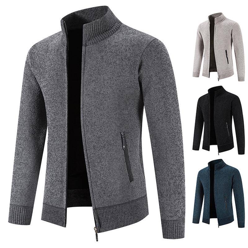 跨境亚马逊秋冬季毛衣男士针织衫开衫线衣拉链休闲夹克宽松外套男