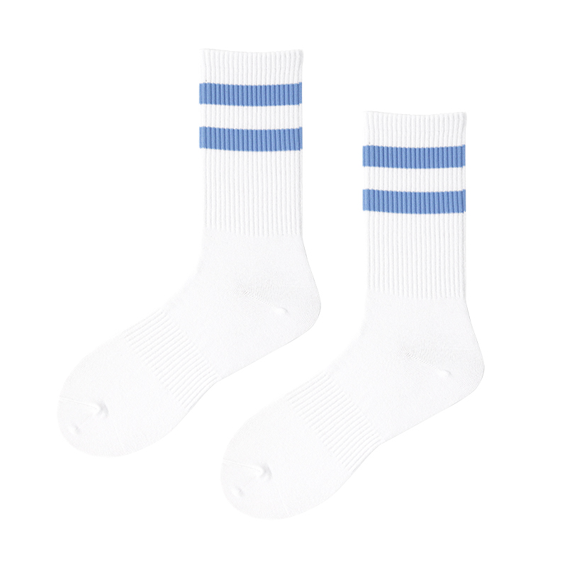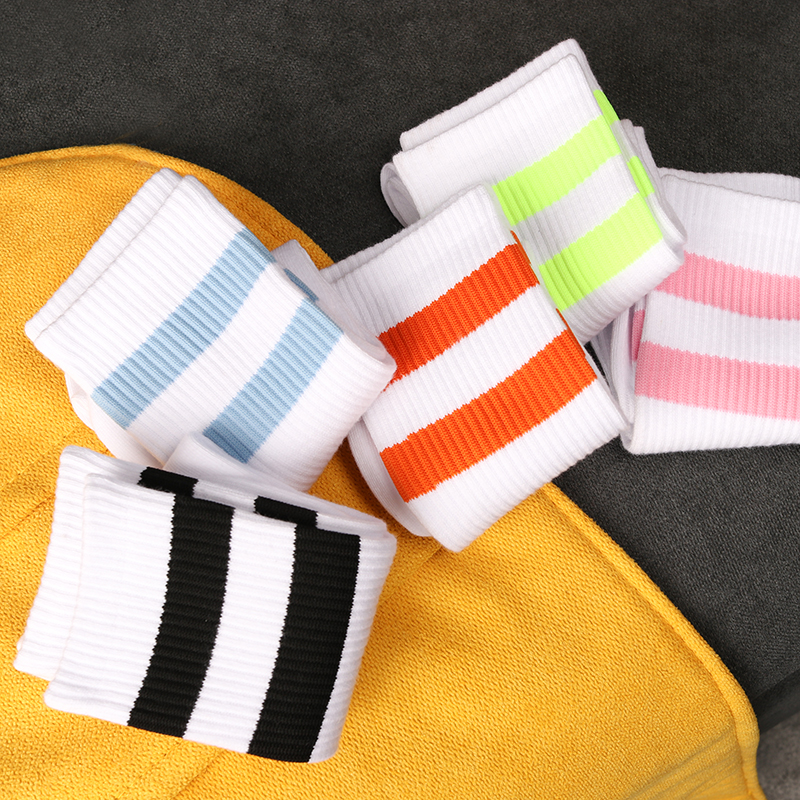 5双装 男士条纹长筒袜子两条杠男生高帮纯棉白袜运动秋冬学院风潮