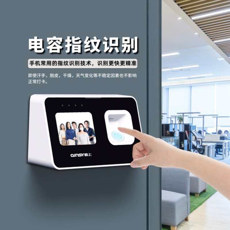 勤上智能云考勤机打卡机多人脸指纹识别一体机员工上班刷脸签到机