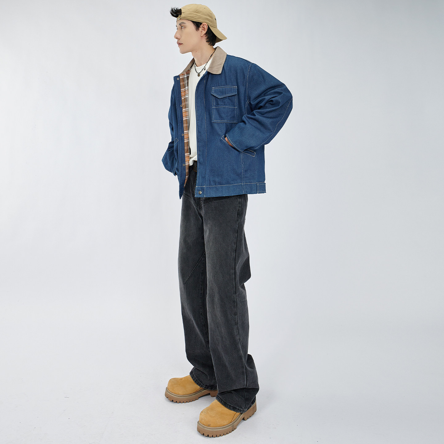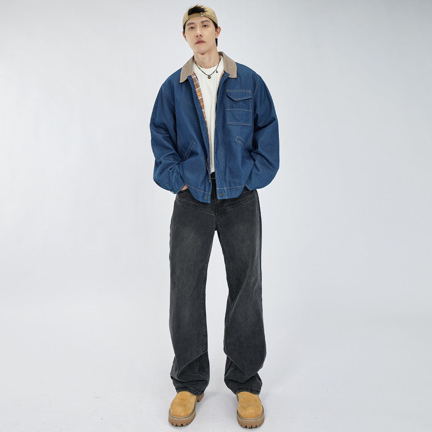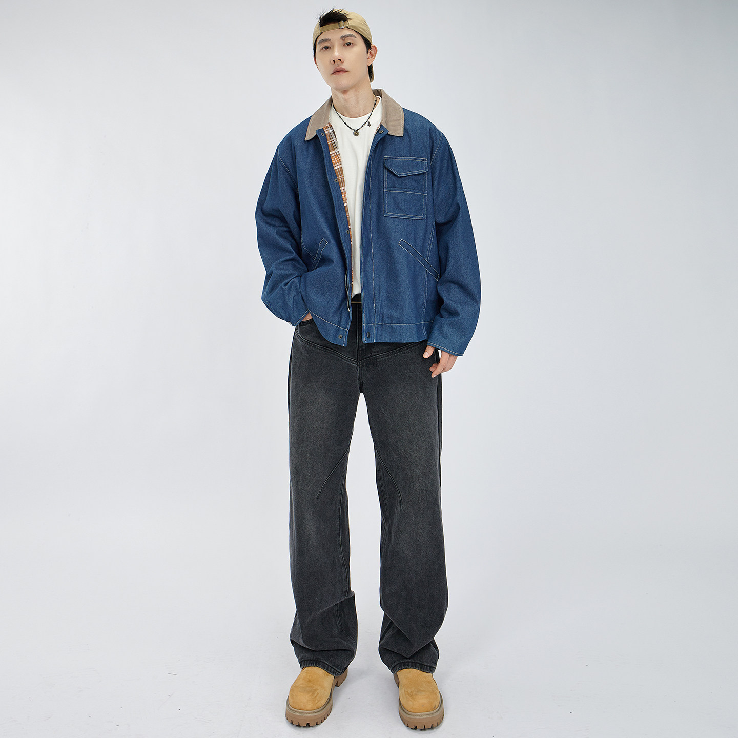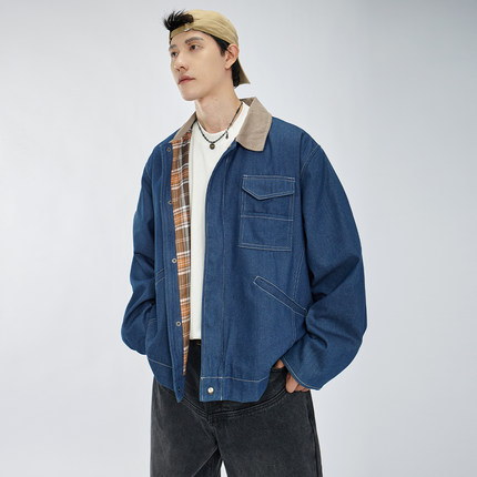 HAMB原创美式复古牛仔拼接外套男