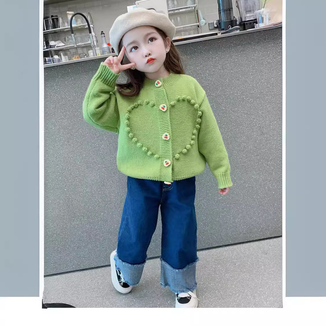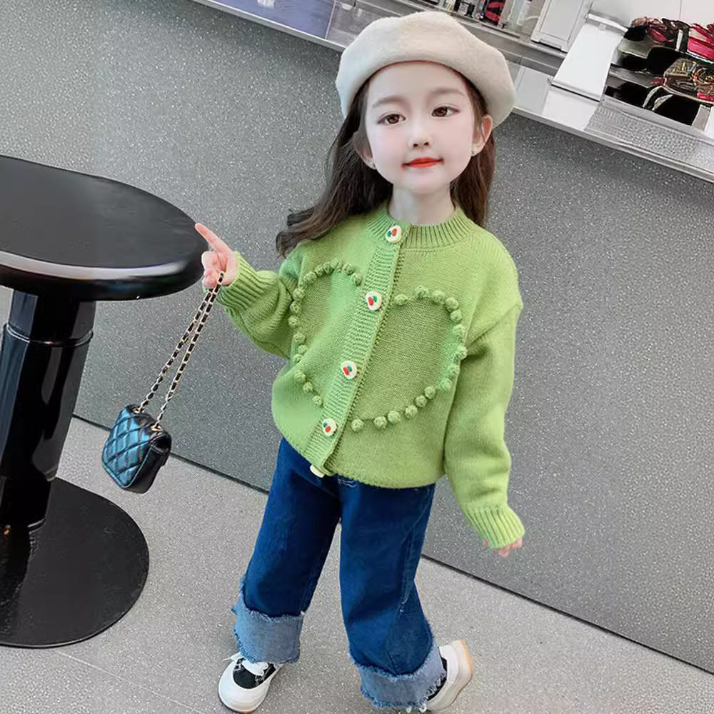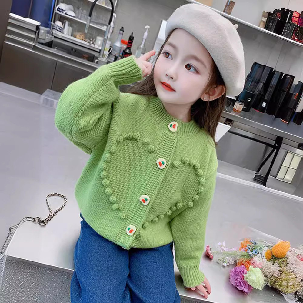 女童针织开衫小童甜美爱心毛衣外套宝宝洋气上衣儿童时髦春秋装