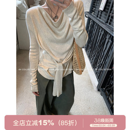GV大白哥 松弛高智 荡领松弛腰带收腰毛针织衫上衣早秋女装新款