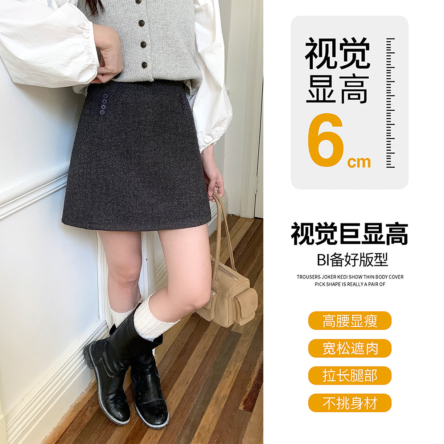 灰色毛呢短裙女秋冬加厚小个子高腰A字包臀裙气质百搭呢子半身裙