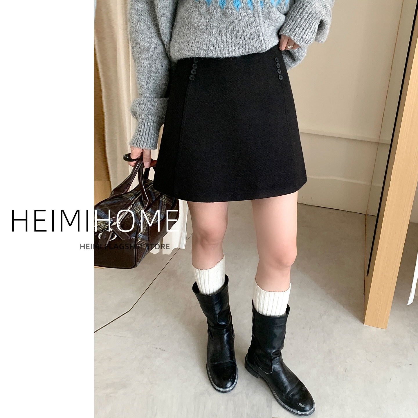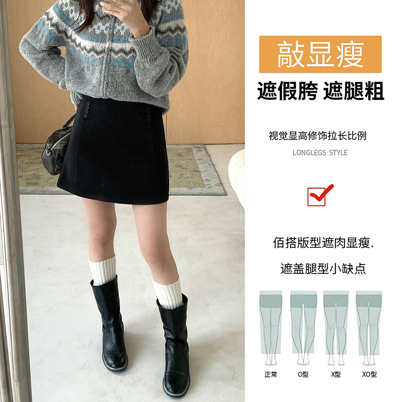 秋冬加厚气质百搭毛呢短裙半身裙