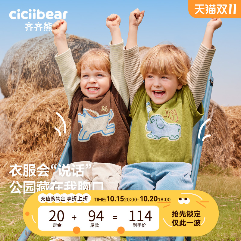 【预售抢先购】齐齐熊男童马甲春秋款宝宝针织衫儿童上衣纯棉