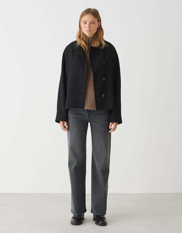 超大轮廓设计HAJONA 超大羊毛混纺短夹克短款大衣优雅秋季造型