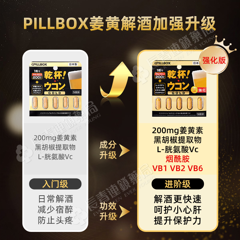 日本进口pillbox解酒药5粒快速醒酒解酒神器护肝片姜黄解酒丸正品