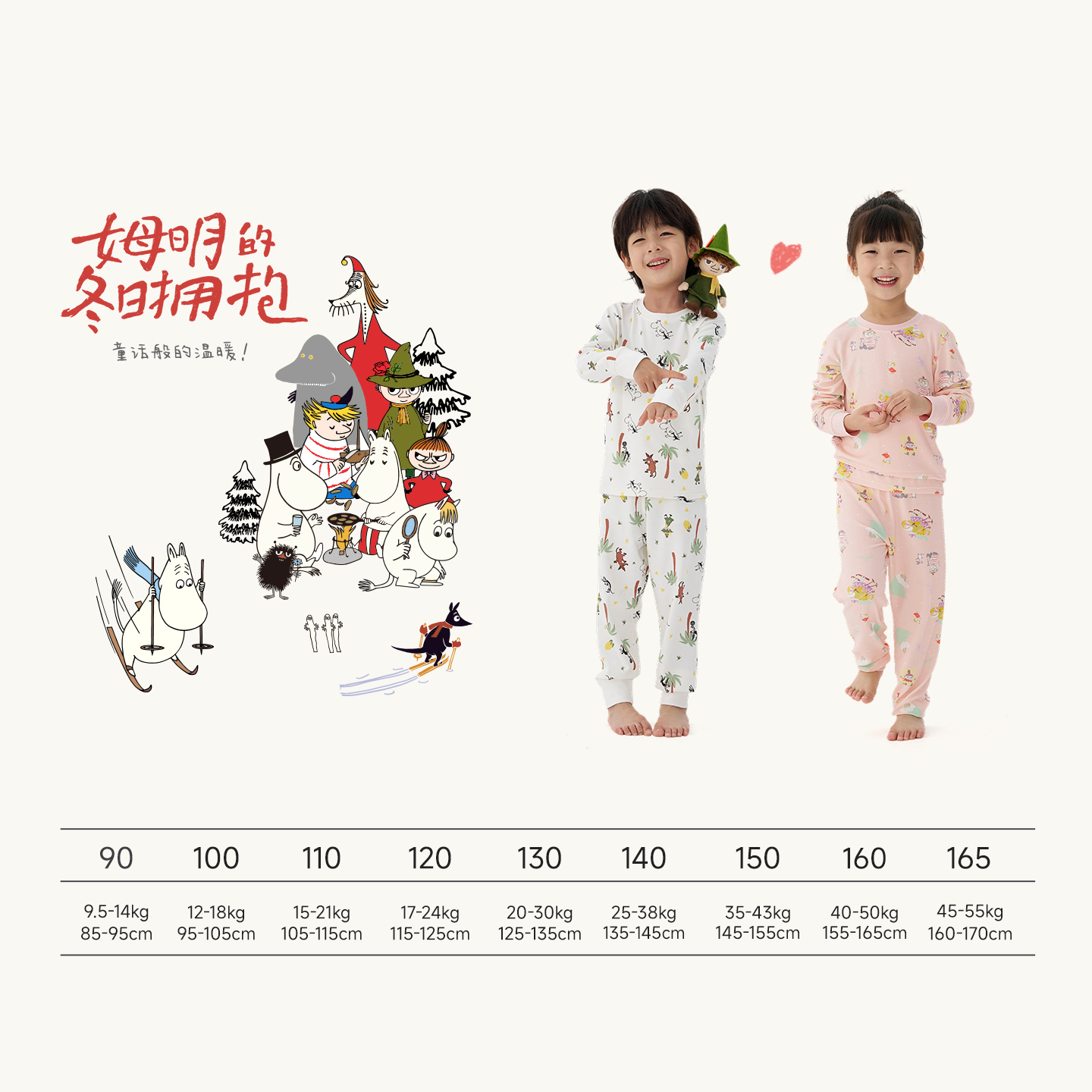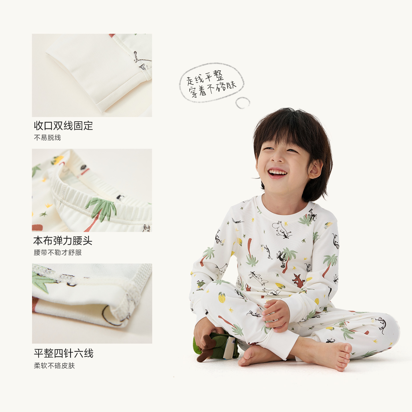 Q21x姆明联名久久棉儿童内衣套装男女孩睡衣A类抑菌薄暖秋衣秋裤