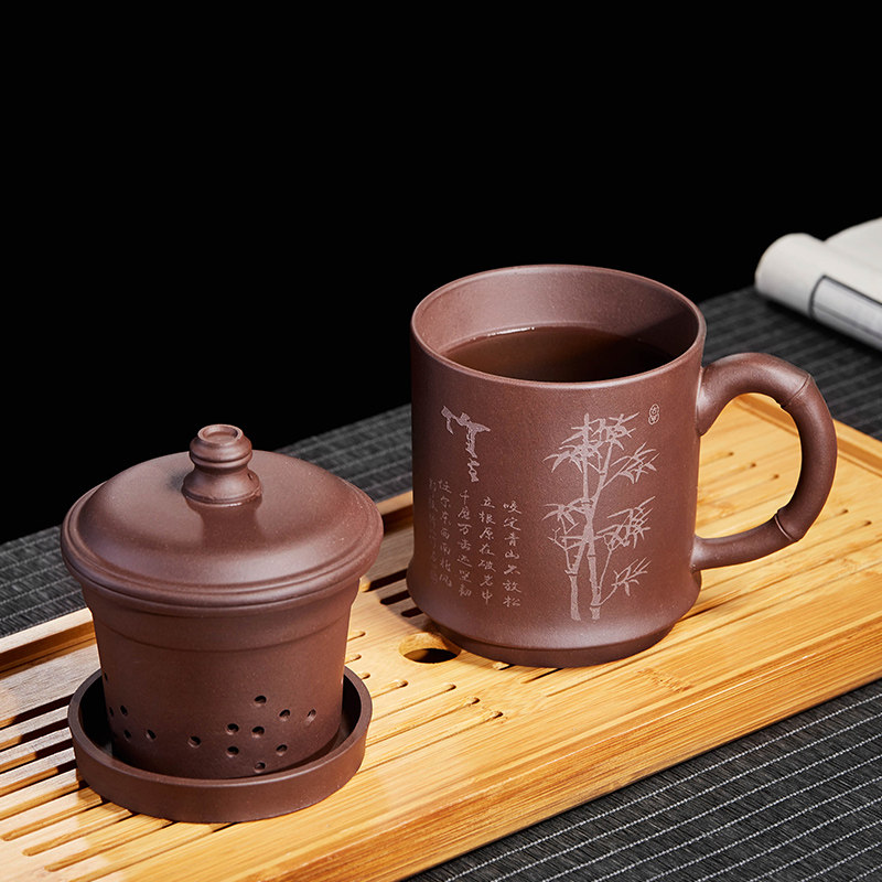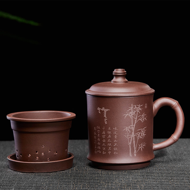宜兴紫砂杯内胆过滤茶水分离泡茶壶杯男士办公带盖杯陶瓷杯子茶具