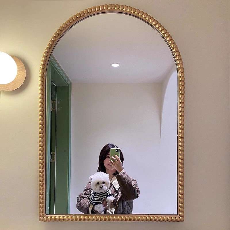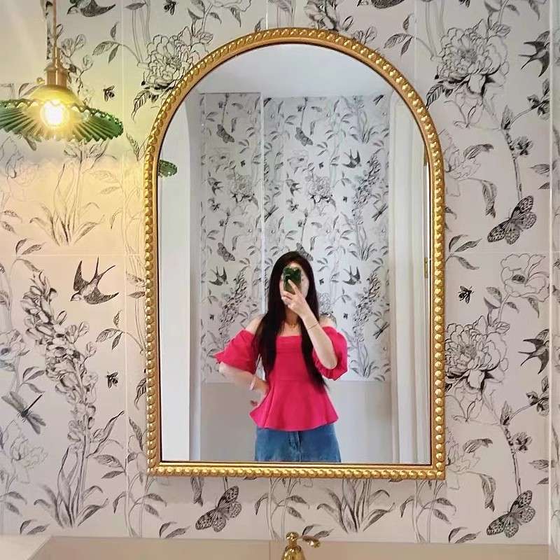 法式复古浴室镜卫生间壁挂化妆镜洗手台挂墙式梳妆镜led防雾镜子