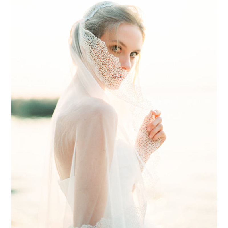 婚纱头纱短款韩式简约新娘结婚拍照旅拍头饰配饰蕾丝花边帽式头纱