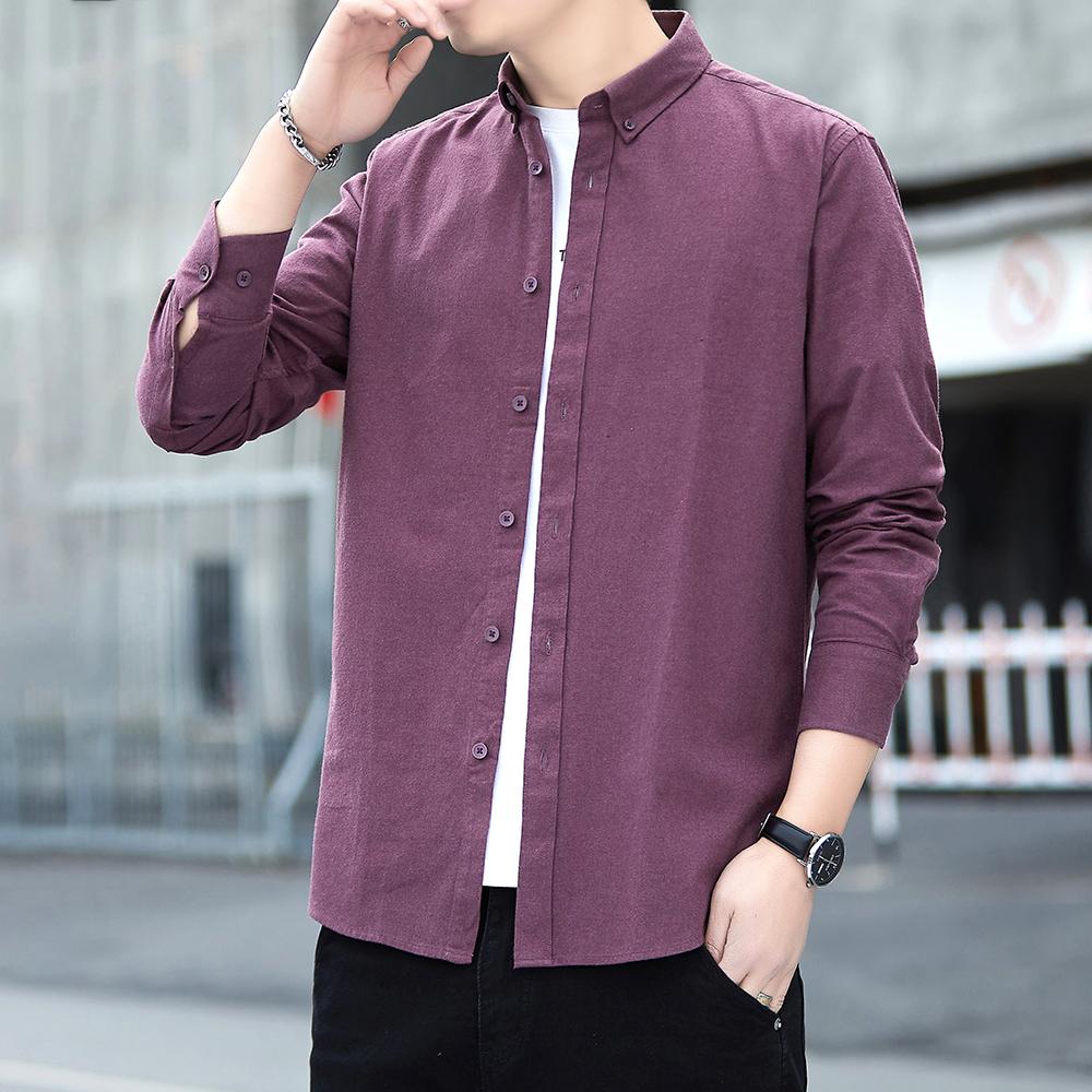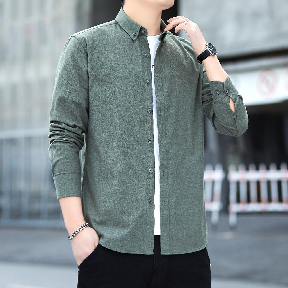 2025秋季新款磨毛纯棉长袖衬衫商务休闲衬衣青年上衣男装外套衣服