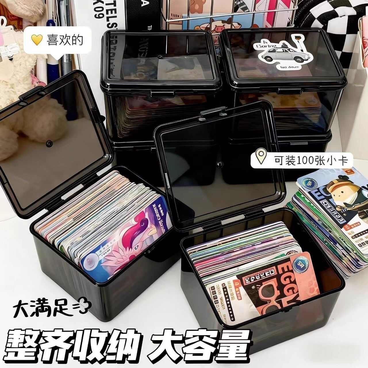 收纳整理盒子防尘透明整理盒带盖美妆蛋杂物眼影桌面谷子收纳盒子