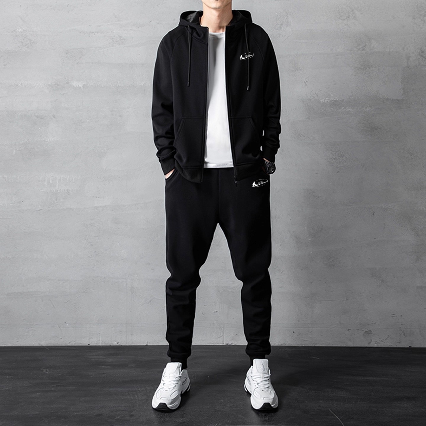 耐克顿运动套装男士秋冬季新款纯棉卫衣开衫外套休闲束脚裤两件套